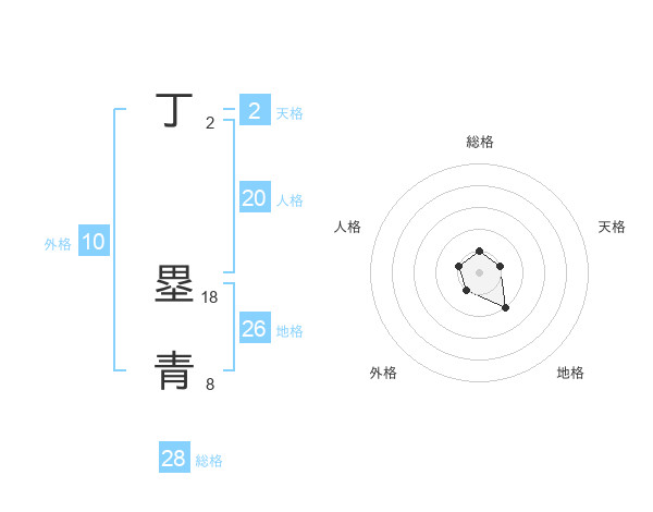 丁 塁青さんの総格は28画の1点!