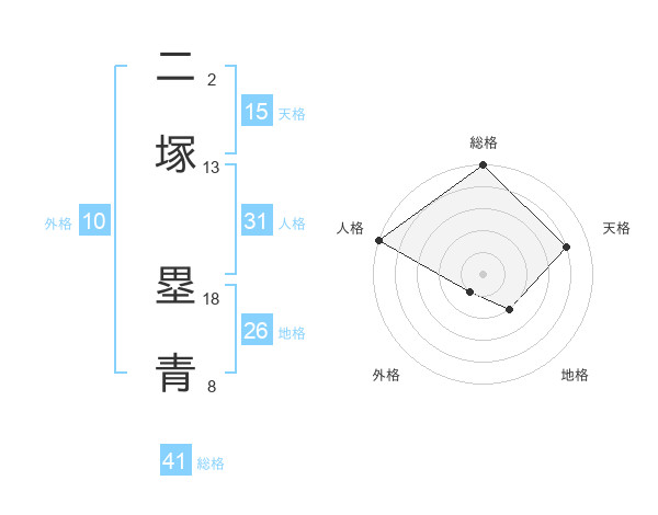 二塚 塁青さんを姓名の画数から五運を鑑定