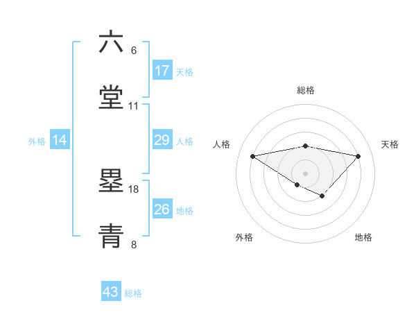 六堂 塁青さんを姓名の画数から五運を鑑定