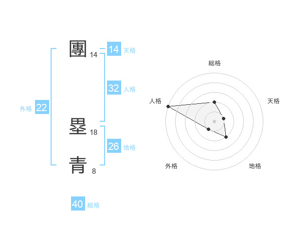 團 塁青さんの外格は22画の1点!