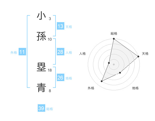 小孫 塁青さんの総格は39画の5点!