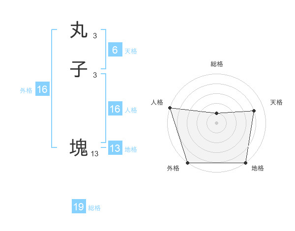 丸子 塊さんの外格は16画の5点!
