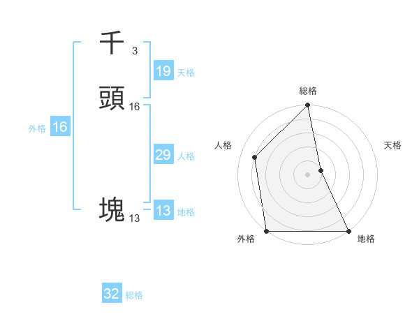 千頭 塊さんの総格は32画の5点!