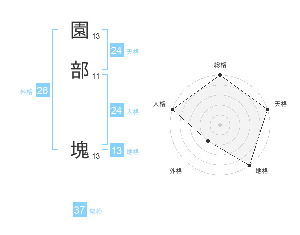 園部 塊さんの総格は37画の5点!