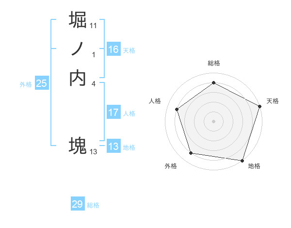 堀ノ内 塊さんを姓名の画数から五運を鑑定