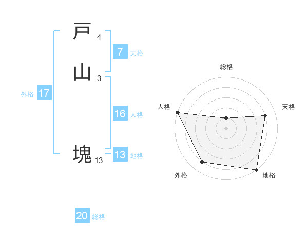 戸山 塊さんの総格は20画の1点!