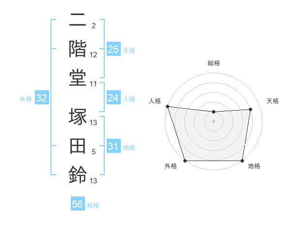 二階堂 塚田鈴さんを姓名の画数から五運を鑑定
