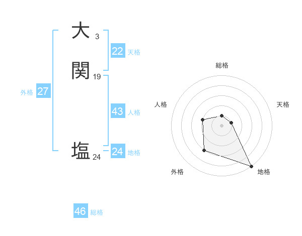 大関 塩さんの総格は46画の1点!