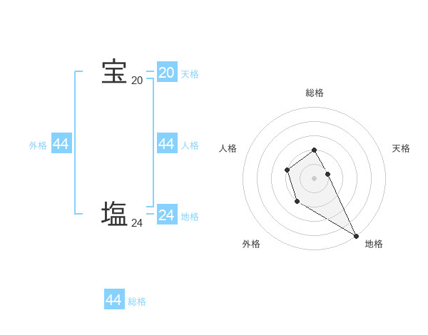 宝 塩さんの外格は44画の2点!