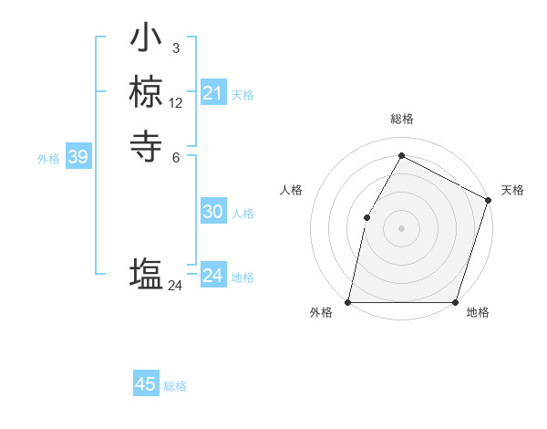 小椋寺 塩さんの外格は39画の5点!
