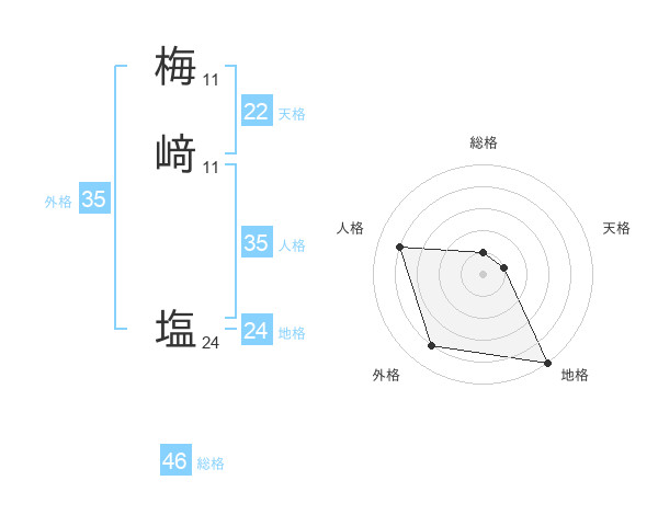梅﨑 塩さんを姓名の画数から五運を鑑定