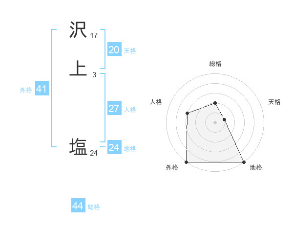 沢上 塩さんの外格は41画の5点!