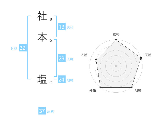 社本 塩さんの総格は37画の5点!