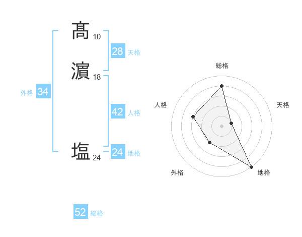 髙濵 塩さんの総格は52画の4点!