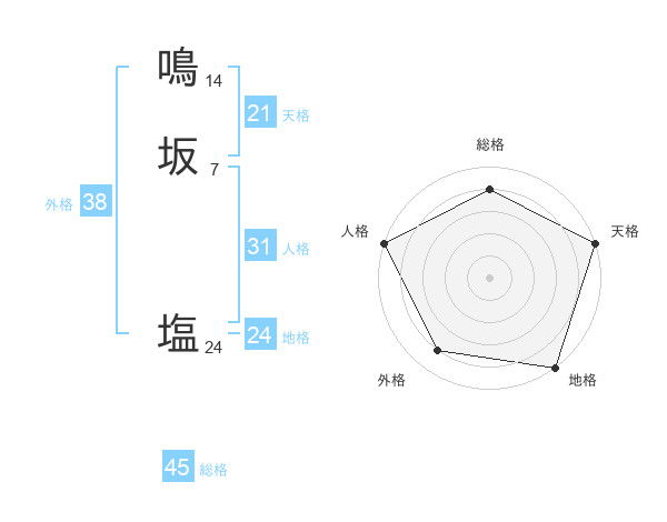 鳴坂 塩さんの総格は45画の4点!