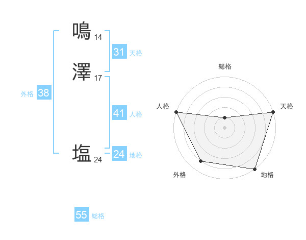 鳴澤 塩さんを姓名の画数から五運を鑑定
