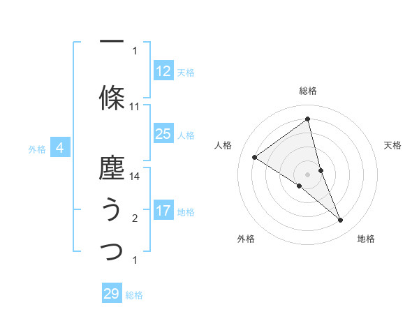 一條 塵うつさんの総格は29画の4点!
