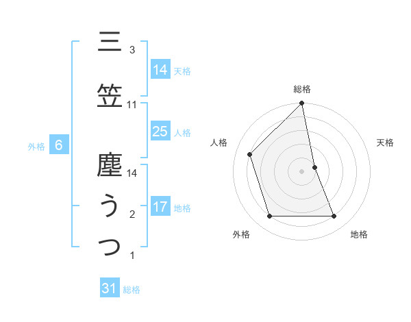 三笠 塵うつさんを姓名の画数から五運を鑑定