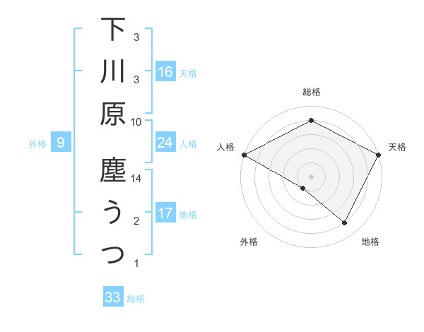 下川原 塵うつさんを姓名の画数から五運を鑑定