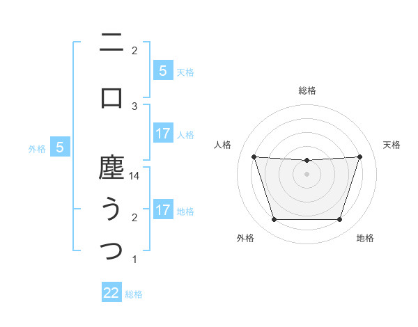 二口 塵うつさんの天格は5画の4点!