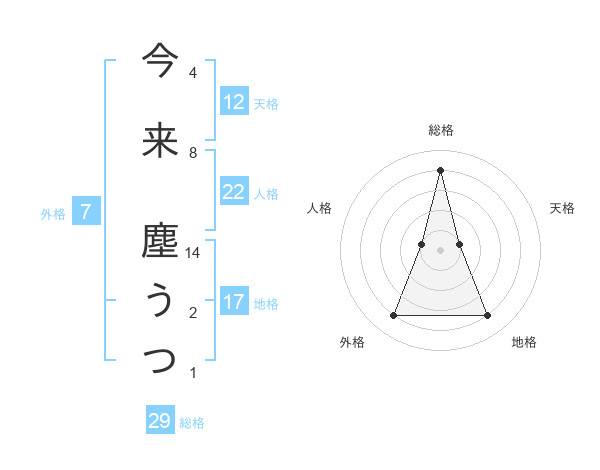 今来 塵うつさんを姓名の画数から五運を鑑定