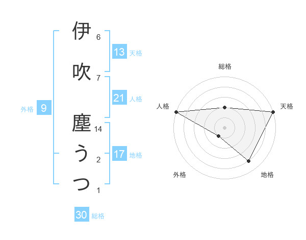 伊吹 塵うつさんを姓名の画数から五運を鑑定
