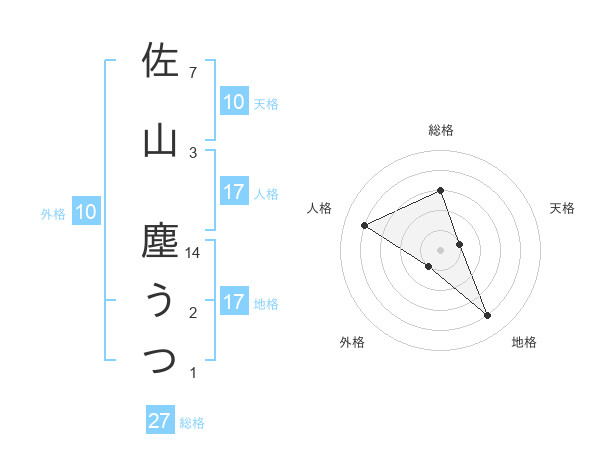 佐山 塵うつさんを姓名の画数から五運を鑑定