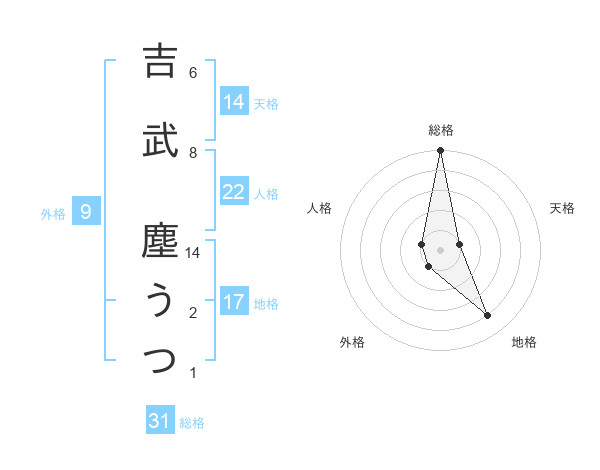 吉武 塵うつさんを姓名の画数から五運を鑑定