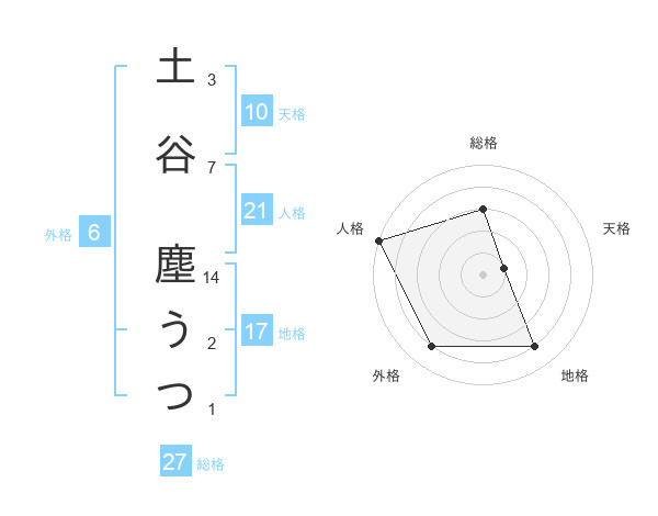 土谷 塵うつさんの総格は27画の3点!