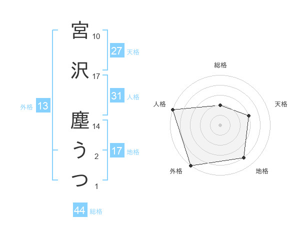 宮沢 塵うつさんを姓名の画数から五運を鑑定