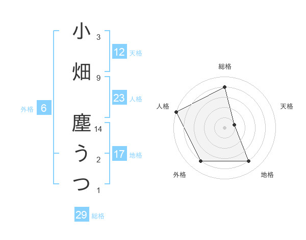 小畑 塵うつさんを姓名の画数から五運を鑑定