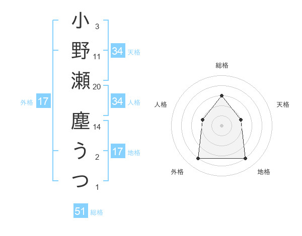 小野瀬 塵うつさんの名前の鑑定結果は!