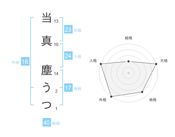 当真 塵うつさんの外格は16画の5点!