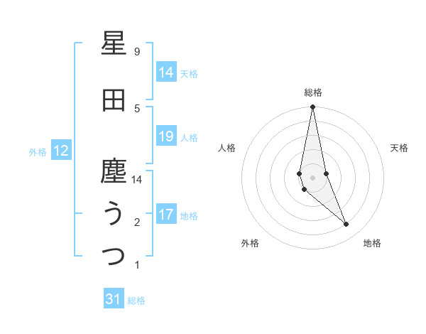 星田 塵うつさんを姓名の画数から五運を鑑定
