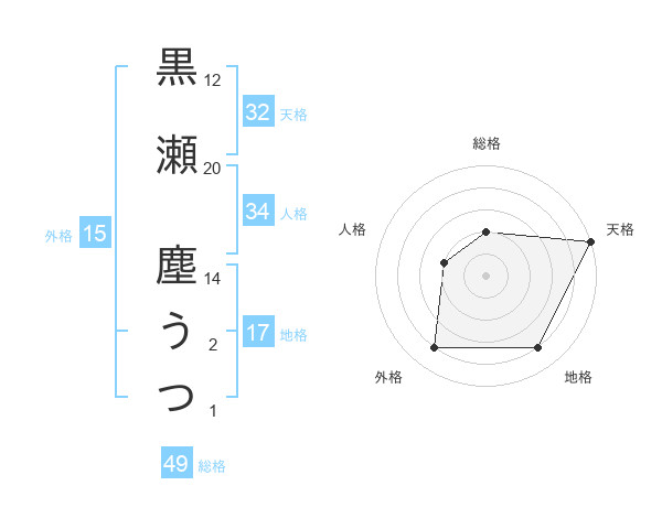 黒瀬 塵うつさんを姓名の画数から五運を鑑定