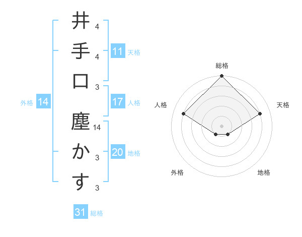 井手口 塵かすさんを姓名の画数から五運を鑑定