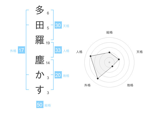 多田羅 塵かすさんの地格は20画の1点!
