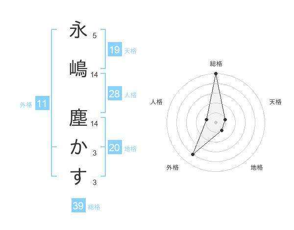 永嶋 塵かすさんを姓名の画数から五運を鑑定