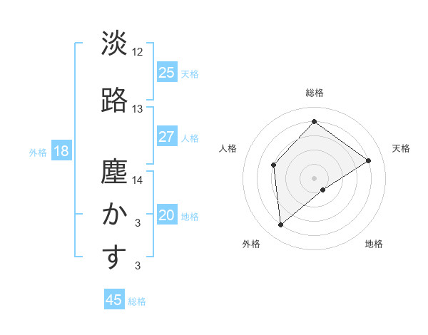 淡路 塵かすさんを姓名の画数から五運を鑑定