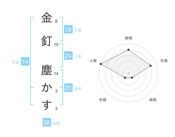 金釘 塵かすさんの総格は38画の4点!