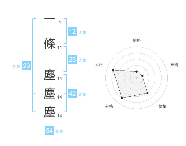 一條 塵塵塵さんの外格は29画の4点!
