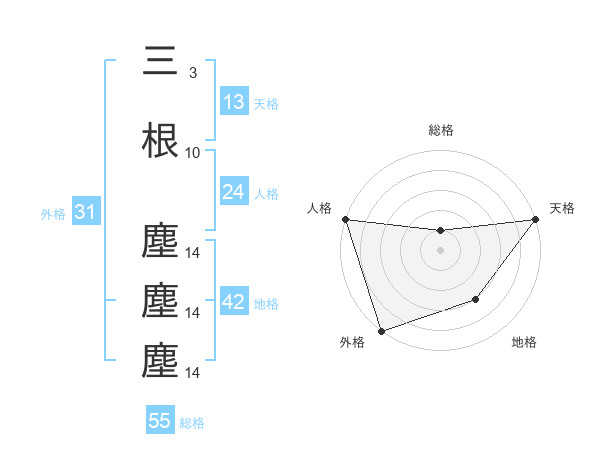 三根 塵塵塵さんを姓名の画数から五運を鑑定