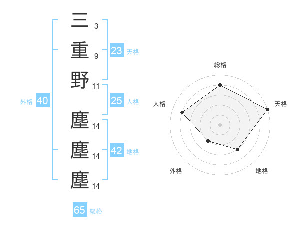 三重野 塵塵塵さんの総格は65画の4点!