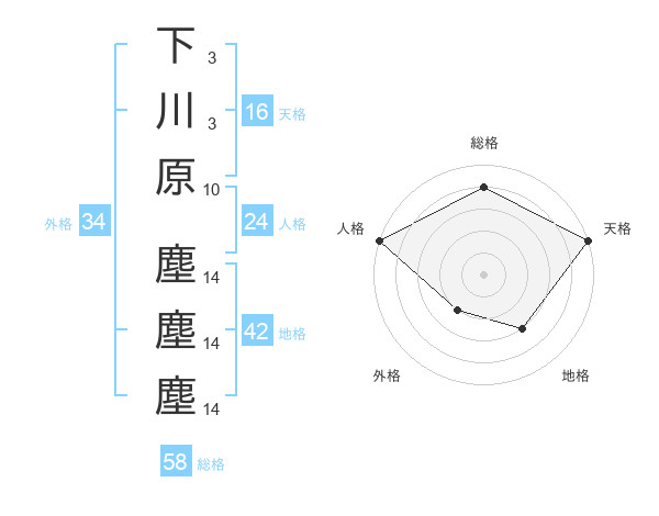 下川原 塵塵塵さんを姓名の画数から五運を鑑定