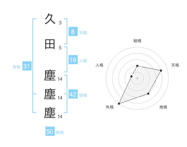 久田 塵塵塵さんを姓名の画数から五運を鑑定