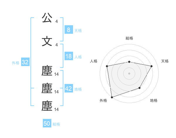 公文 塵塵塵さんを姓名の画数から五運を鑑定
