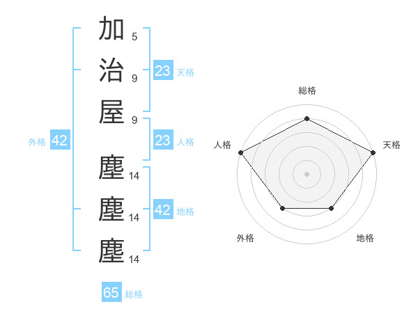 加治屋 塵塵塵さんの天格は23画の5点!