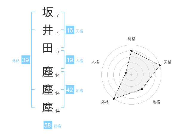 坂井田 塵塵塵さんを姓名の画数から五運を鑑定