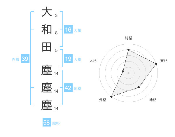 大和田 塵塵塵さんを姓名の画数から五運を鑑定