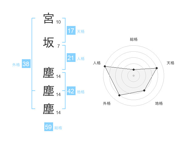 宮坂 塵塵塵さんを姓名の画数から五運を鑑定